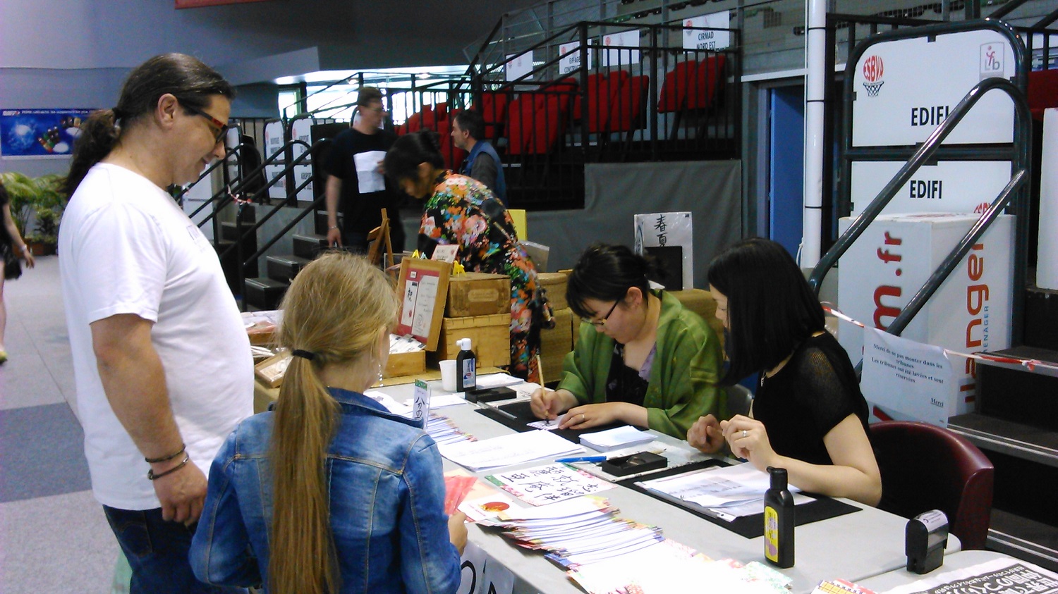 2016年5月28日29日 Villeneuve-d’Ascq市Palaciumで開催されたExposition de bonsaïs(盆栽展)に名前書きスタンドを出店しました。