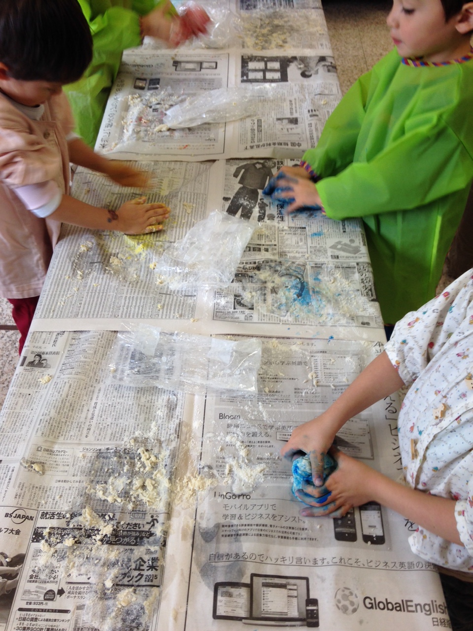 27日がお月見という事で、子ども達と一緒に小麦粉ねんどを作りました。今月のお月見は大きな満月だそうです。もし晴れていたら見てみて下さいね。