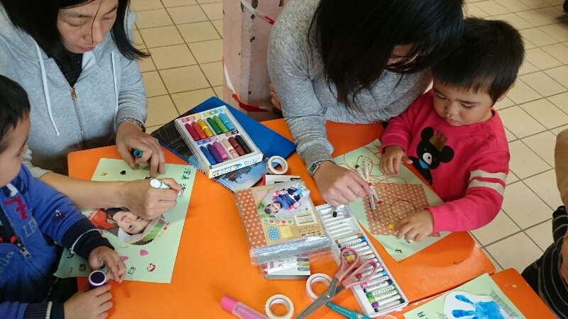 (日本語) どんぐりレポート 2015年11月 執筆者 Ecole Japonaise du Nord-Pas de Calais | 11月 8, 2015 | どんぐり (活動再開!2017.9) | コメント0件 11月4日どんぐりレポート 今回は、Cグループの皆さんはほし組との合同授業でしたので、以下はA&Bグループの活動になります。 活動内容 1、絵本の読み聞かせ ・おすわりくまちゃん ・うずらちゃんのかくれんぼ ・うんち 他 3冊 2、パパへのプレゼント作り 絵の具で手足の型をとったり、絵や写真で飾ったり、スタンプを押したりして、プレゼントを作りました。次回、ラミネートして、皆さんにお渡しします。