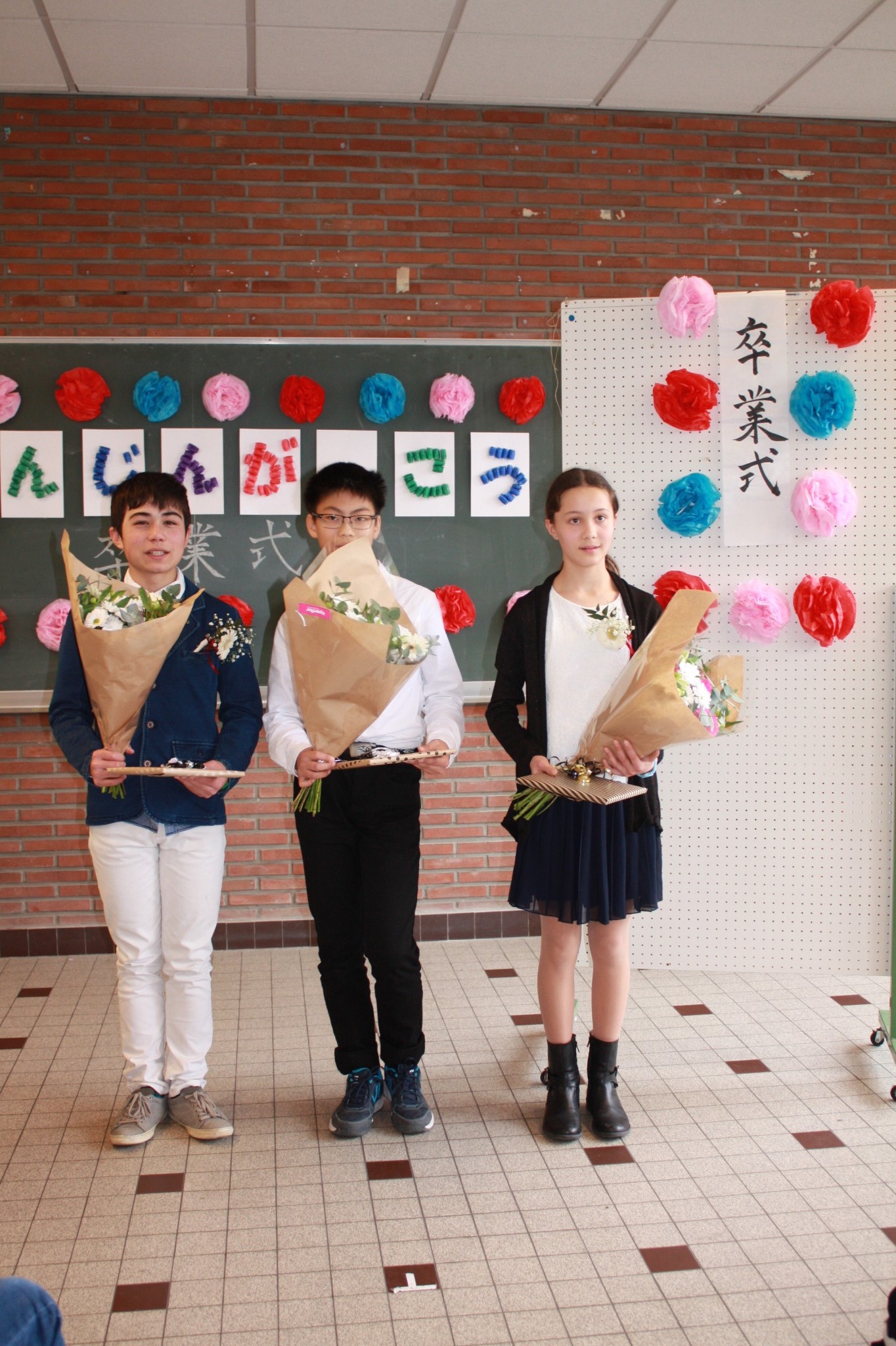 3月18日に、小学部の卒業式が行われました。卒業生は3人。ご卒業おめでとうございます。小学校生活6年間をこの学校で過ごしました。共に笑い、辛い時は励まし合ってがんばってきました。日本語の勉強も、運動会や学校祭の行事もいつも仲間と一緒に取り組んできましたね。下級生と保護者・先生たちから温かい言葉と拍手を受けて誇らしげな3人でした。在校生代表の言葉の後に、3人からの答辞も素晴らしかったです。3人は4月から中学生になります。小学生・幼稚園生の憧れの先輩になってもらえたらなと思います。ご卒業本当におめでとうございます!
