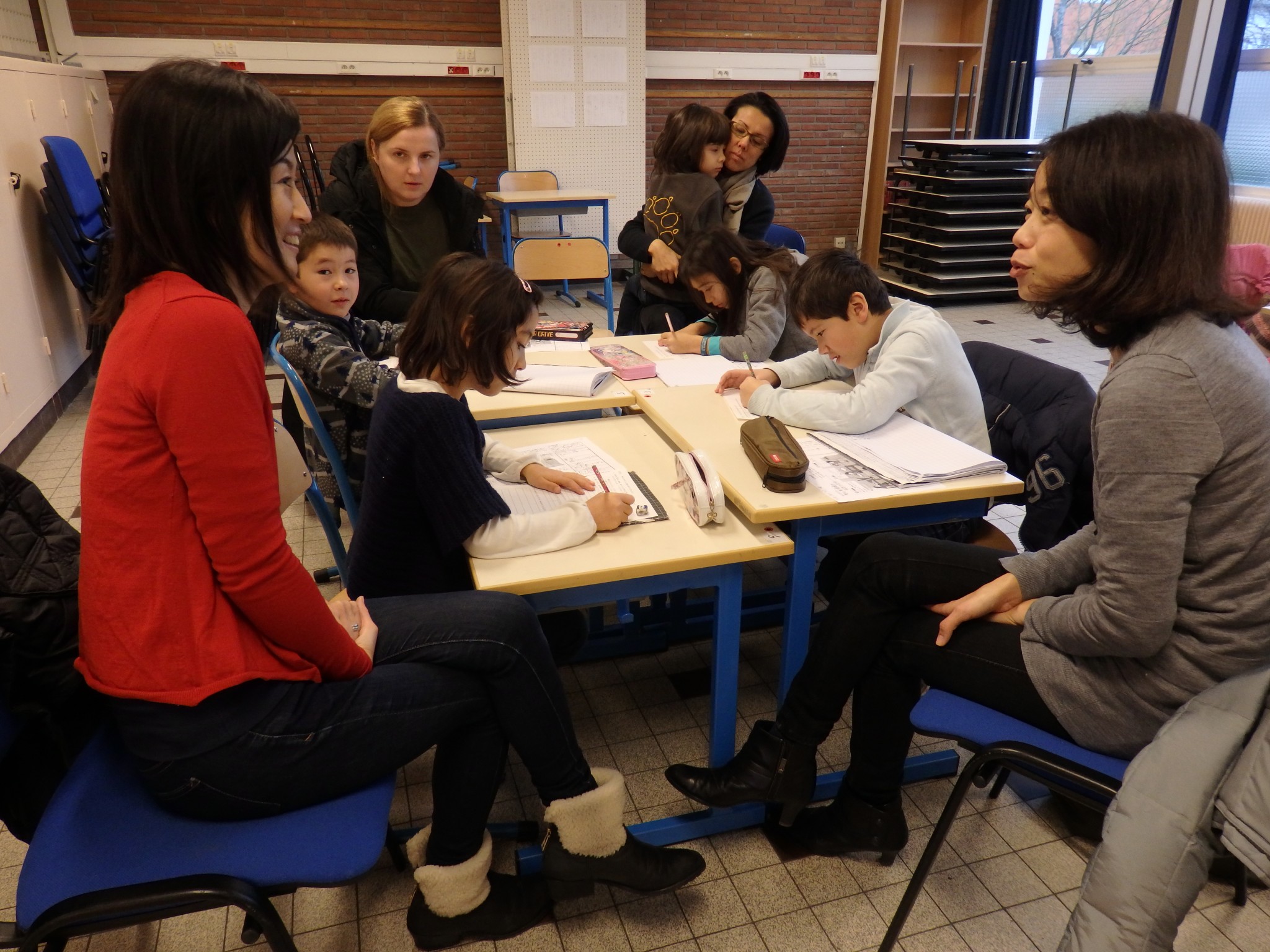 保護者参加型の授業がありました。1年生は課題で先生から読んでくるように指示された本を、各生徒が好きな所、一番印象に残ったことろをお友達に紹介しました。働く車の図鑑や、物・人を運ぶ道具や乗り物の本でした。お友達に伝えるにはどのように話したらいいか、一生懸命考えながら発表していました。2年生は将来こんな物があったらいいなと思うものを想像して、書いてまとめて発表しました。子供は想像力豊かで大人もびっくりする物や、実際に商品化されつつ物が発表されました。普段の子供たちだけの授業も楽しんでいると思いますが、お母さんと一緒に勉強できる授業も子供たちは楽しんでいました。