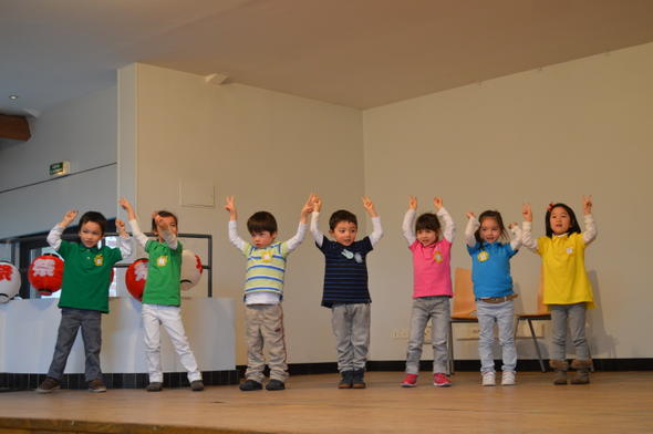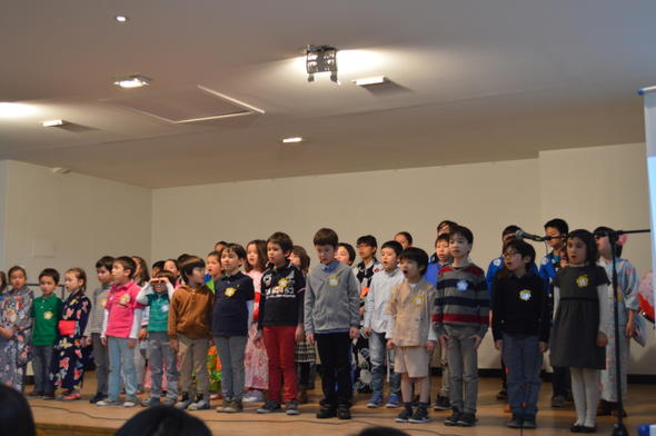 幼稚部と小学生以上の子供たちの歌「切手のない贈り物」、幼稚部就園前の子供たちの「大きな栗の木の下で」、フランス人子供クラスの「365日の紙飛行機」、そしてフランス人大人クラスの」「花」と素晴らしい歌声が続きました。