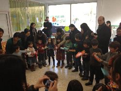 (日本語) 2012年12月 クリスマス会 執筆者 Ecole Japonaise du Nord-Pas de Calais | 12月 13, 2012 | 季節の行事イベント | コメント0件 2学期の終業式ならびにクリスマス会が行われました。幼稚部では「はやくあいたいなサンタさん」のお遊戯後、クリスマスプレゼントの交換会が行われました。 子供たちは目をきらきら輝かせ、プレゼントを開いていました。