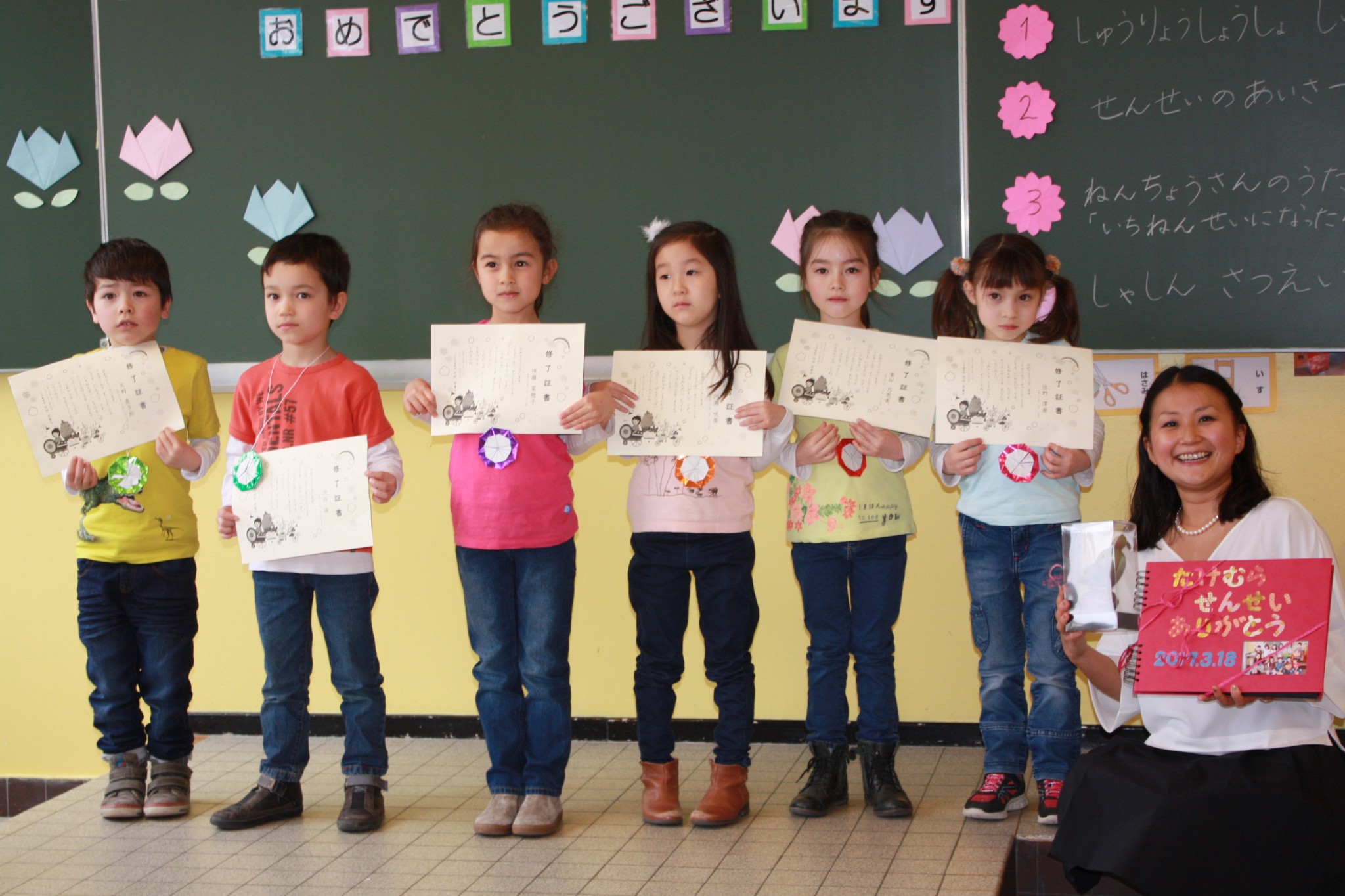 今では立派な年長さんとなり4月から1年生になります。卒園式は涙・・・というより笑いが絶えない会でした。いつものように笑顔いっぱいの年長さんでした。4月から新しい教室、友達、先生と楽しく過ごして欲しいですね。離れ離れになってもずーっと友達!!出会いがあれば別れがあって、別れがあって出会いがある!今後もたくさんの別れと出会いを経験し、いつでも友達を暖かく送り出し、また迎え入れられるような、やさしい心を大切にしていって欲しいと思います。