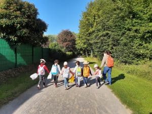 散策中はきれいな落ち葉や、木にびっしり生えたきのこ、葉っぱにくっついているかたつむり、きれいなお花など多くのものを見つけました。